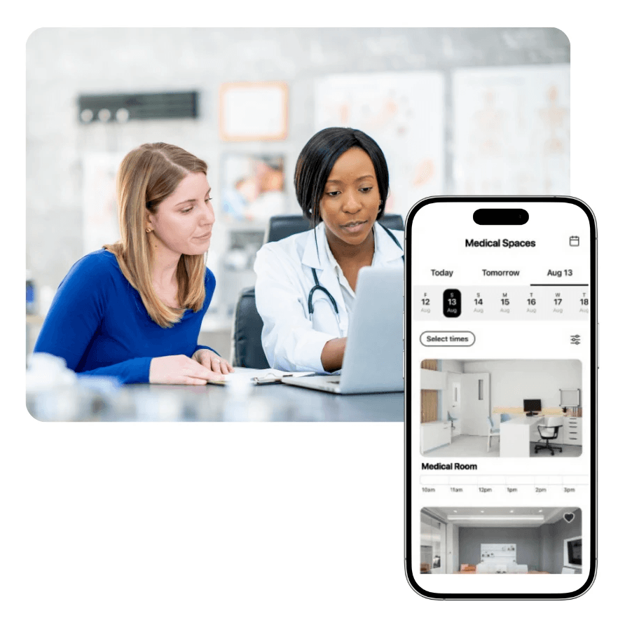 Manage your practice from anywhere. Book rooms, pay invoices, unlock doors, and network with other members through our all-in-one mobile tool.